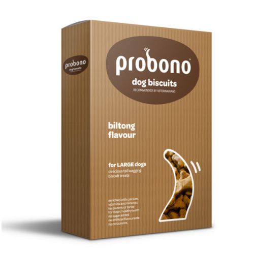 Probono Biscuit Biltong, a meaty, crunchy treat that your big companion will adore.